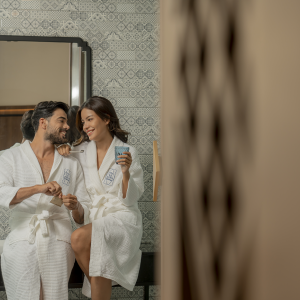 From the suite, guests can enjoy picturesque views of the pool, creating a soothing visual connection with water and nature—even in the heart of Bangkok’s old town. Whether it’s the sparkle of the morning sun or the glow of lights reflecting off the pool at night, the view adds a touch of serenity that elevates your stay.